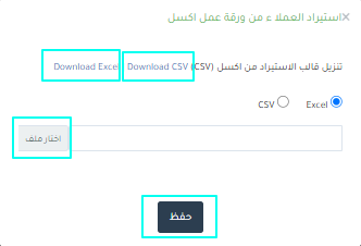 العملاء ثم رفع الملف من اختيار ملف ( يمكنك الاختيار بين ملفات