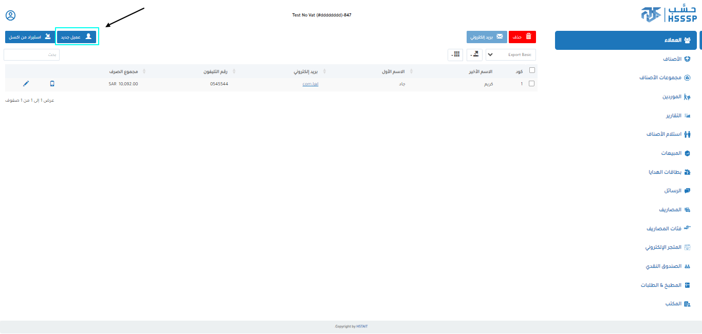 -يتم اضافة العملاء من الرئيسية ثم العملاء